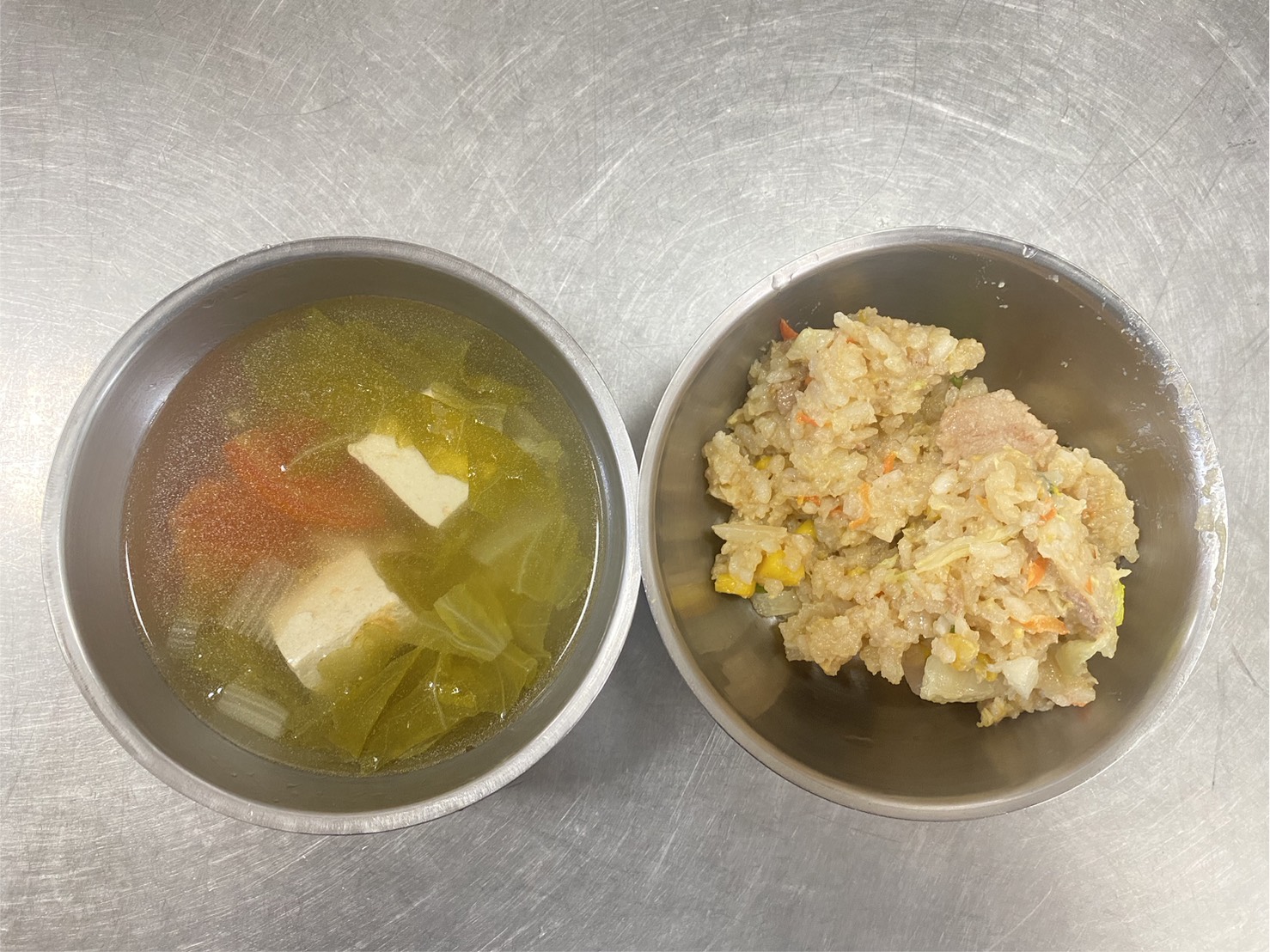 蔬菜蛋炒飯、青菜豆腐湯