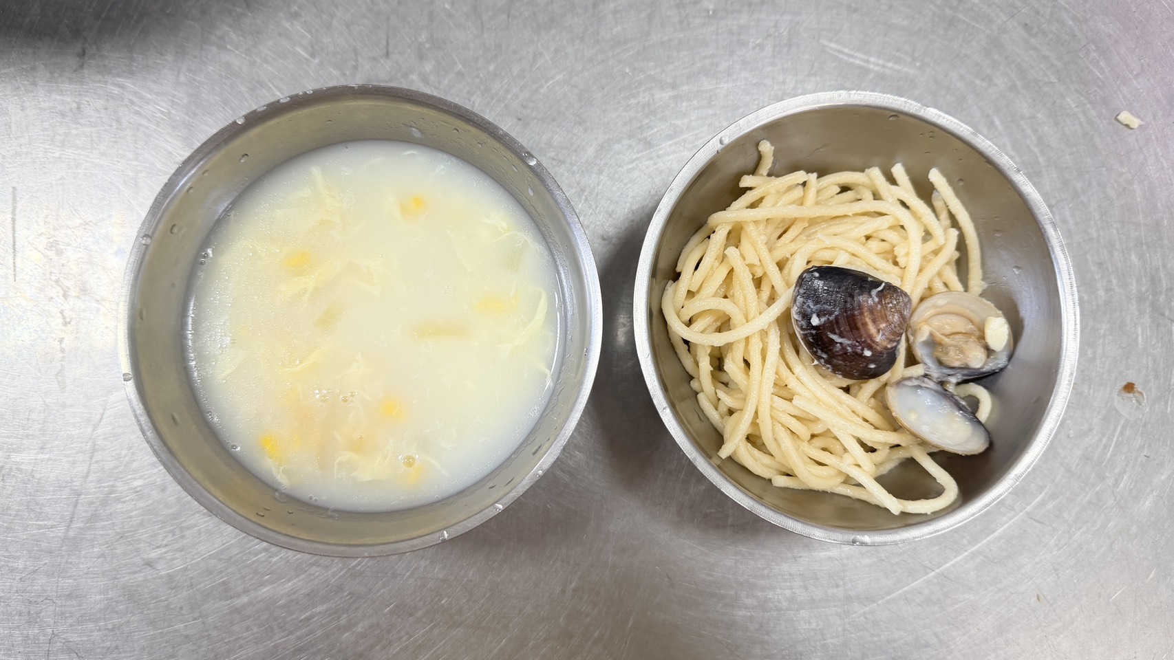 蒜香蛤蠣義大利麵、玉米濃湯