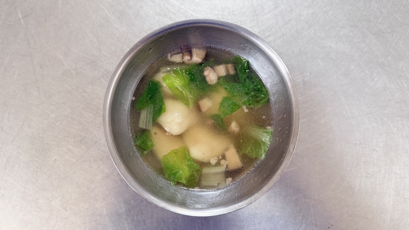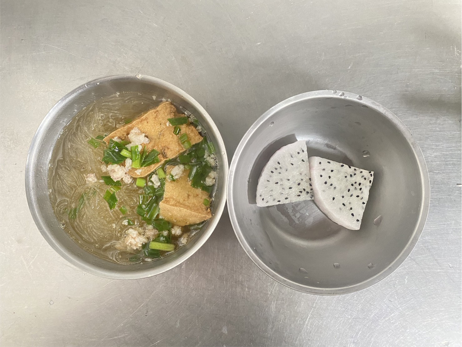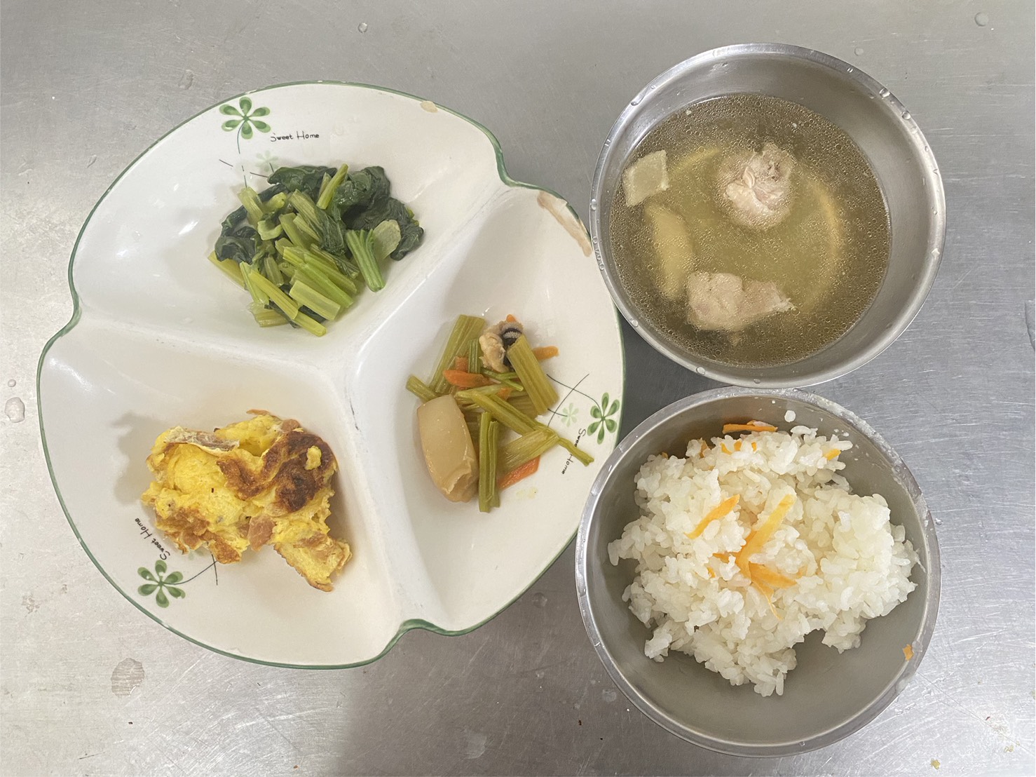 地瓜飯、花枝芹菜、菜脯蛋、時令青菜、香菇雞湯